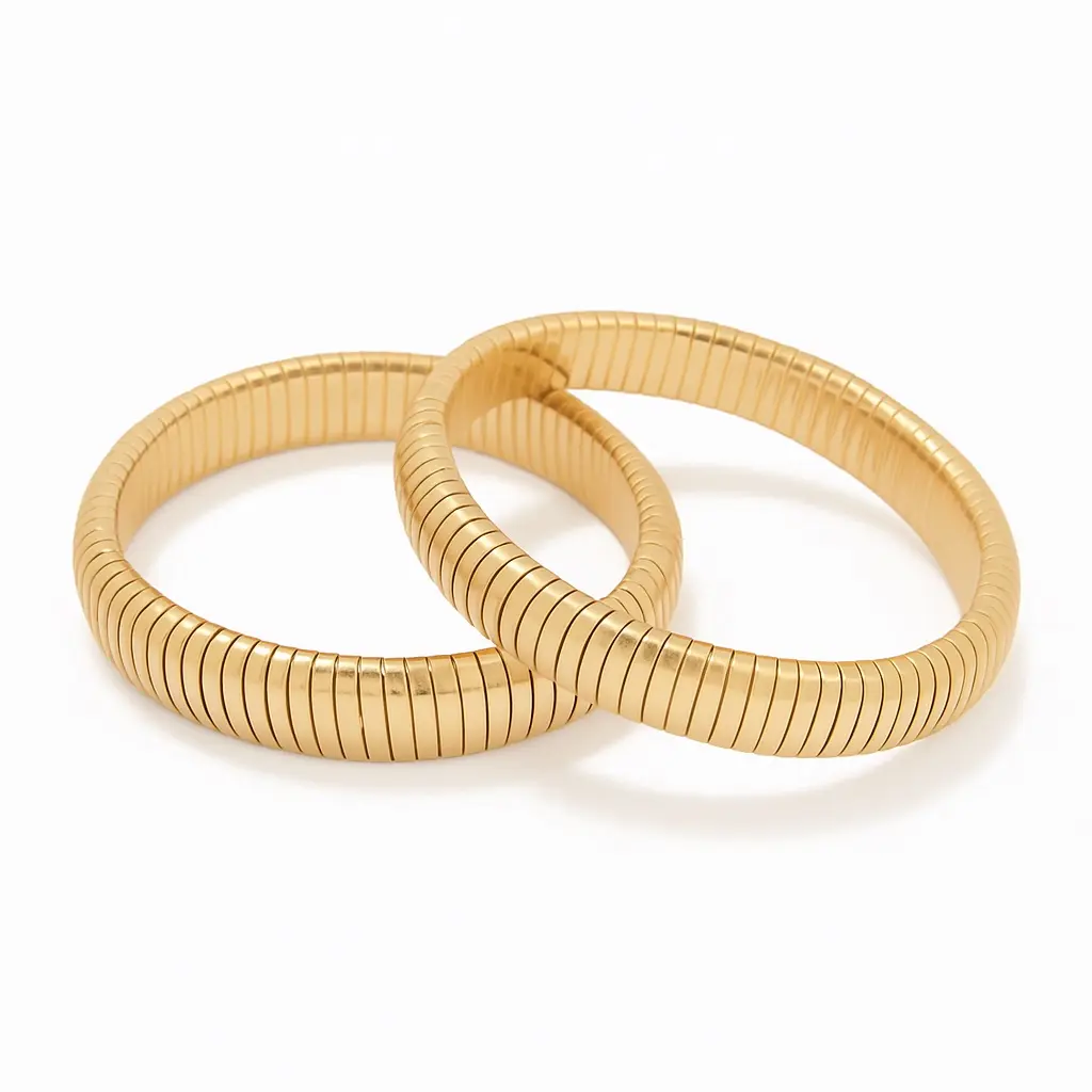 Het gladde, elastische design zorgt voor een comfortabele fit, terwijl de glanzende gouden afwerking elke outfit een luxe uitstraling geeft.